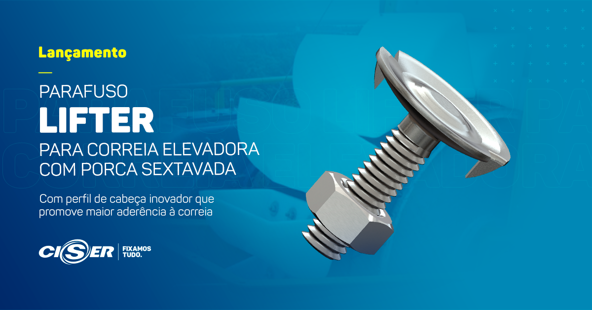 A Ciser se destaca como pioneira no mercado nacional a fornecer parafusos para correia elevadora com esta geometria, sendo que a alteração do conceito geométrico da trava do produto aprimora o encravamento do parafuso na borracha e garante maior segurança e eficácia na instalação das canecas utilizadas em elevadores para transporte de grãos e similares.